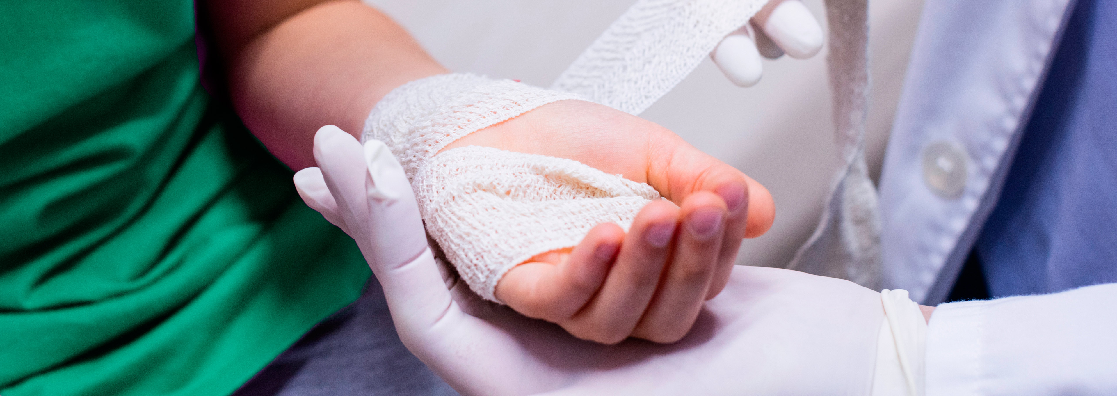 141775772, Doctor putting bandage on injured hand of patient, WavebreakMediaMicro